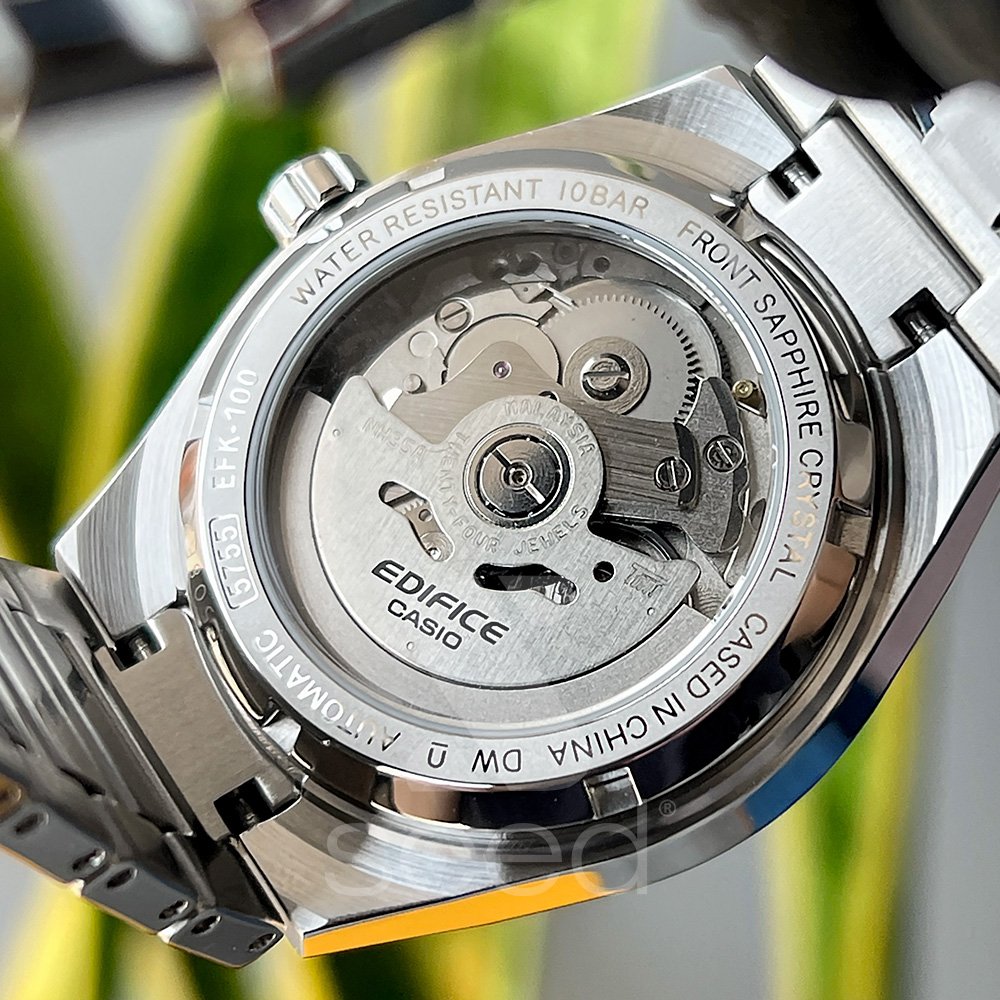 El Casio Edifice EFK-100CD-1A combina ingeniería mecánica de precisión con un diseño moderno y sofisticado. Su esfera de carbono forjado refleja la potencia del automovilismo, mientras su estructura en acero inoxidable y cristal de zafiro garantizan resistencia y elegancia. Un reloj automático que destaca por su rendimiento, durabilidad y estilo profesional.